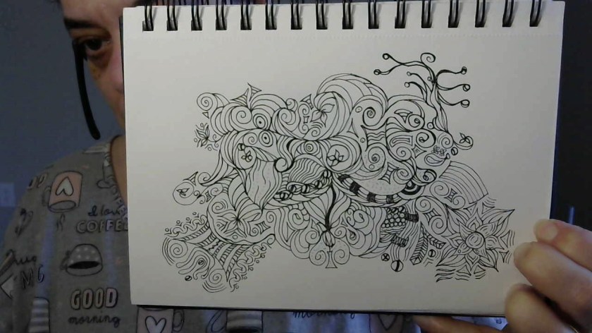 It’s been rough, these past two months, and it didn’t have anything to do with what was going to be bought for Christmas. Things have been a bit tight, and it has had me worrying and stressing a lot. So, what did I do? I took my sketchbook, a pen, and just let my pen do the work.