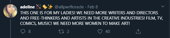 There are more female roles to count with well-rounded character development and solid backstories throughout television, movie, musical, and comic book history. You just have to LOOK FOR THEM. They exist. I provided PLENTY of examples.