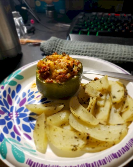 On my quest to lose weight and take care of myself, I am experimenting with new ways of making traditional dishes. One of these is stuffed bell peppers. I like to eat them, but I decided to change it up a bit and replace a couple of ingredients.