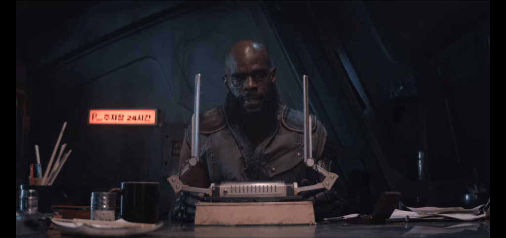 They couldn’t even get Ein’s story right. How do you screw up stuff THIS badly? We see him for the first time leading the bumbling duo to Hakim. He may, or may not be a data dog. The fact something opened a digital cage from the inside could be a hint that Ein is, but that would mean he is a legal experiment and not an illegally modified dog. Yes, I am nitpicking the crap out of this.