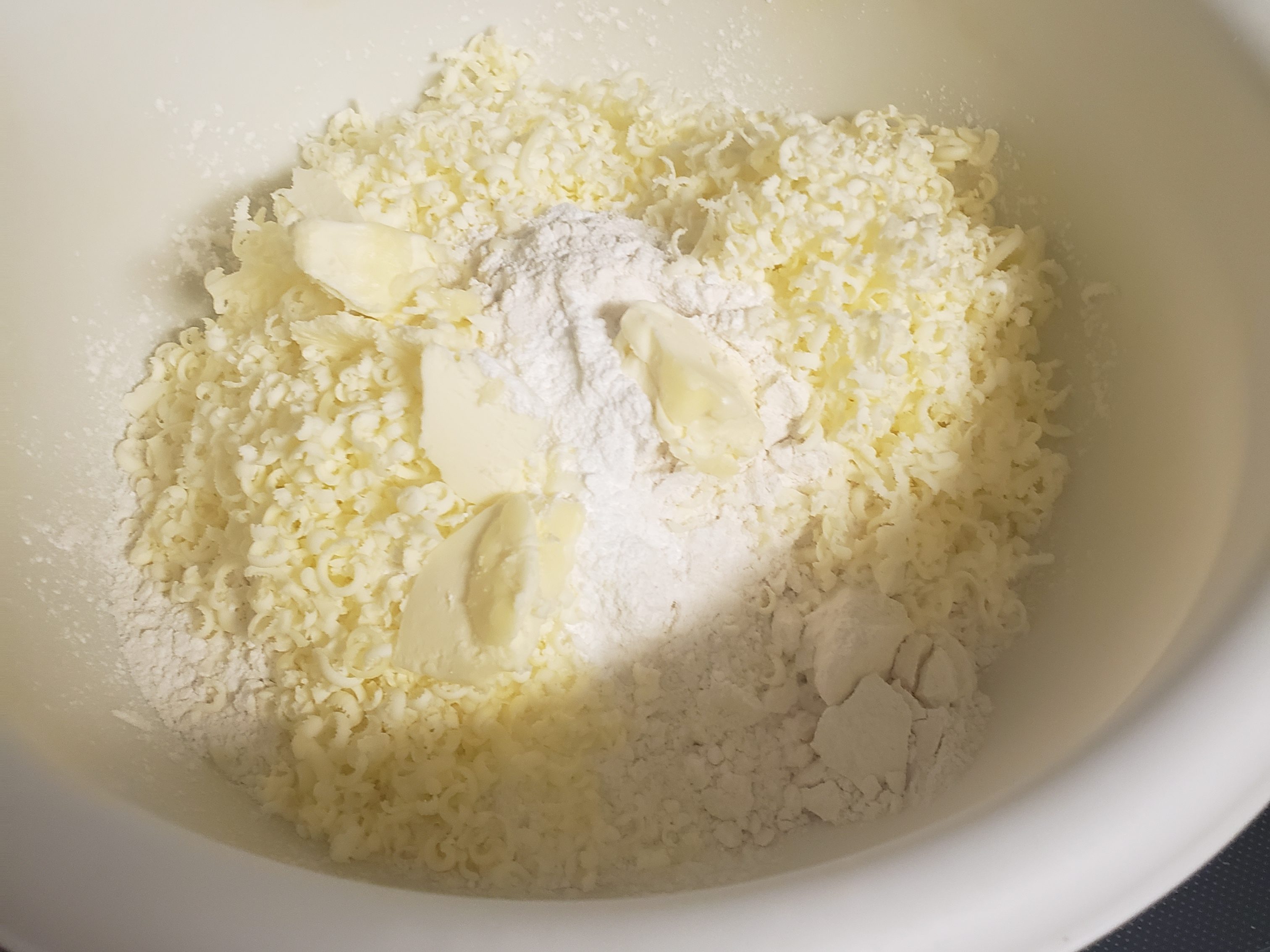 4. Using a fork press the butter into the mixture until it is crumbly and you can’t feel any more lumps. If you used a grater, stop when it’s crumbly.