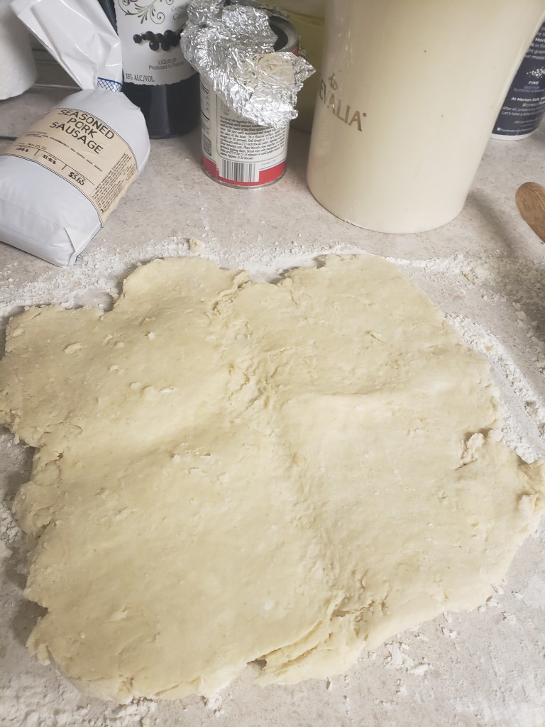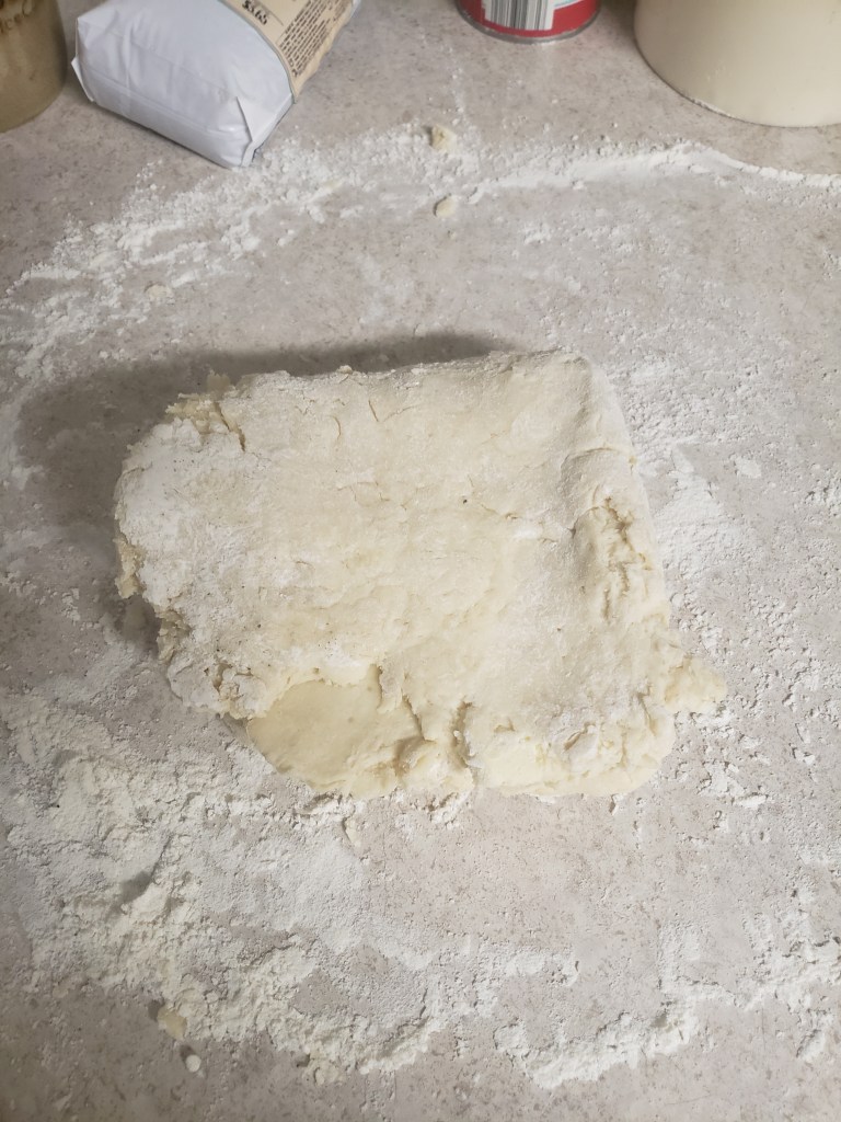 8. Roll the dough until it’s 1/4-1/2-inch thick depending on how tall you want them. DO NOT ROLL THE DOUGH UNTIL THE FOLDS DISAPPEAR. Those are your layers.