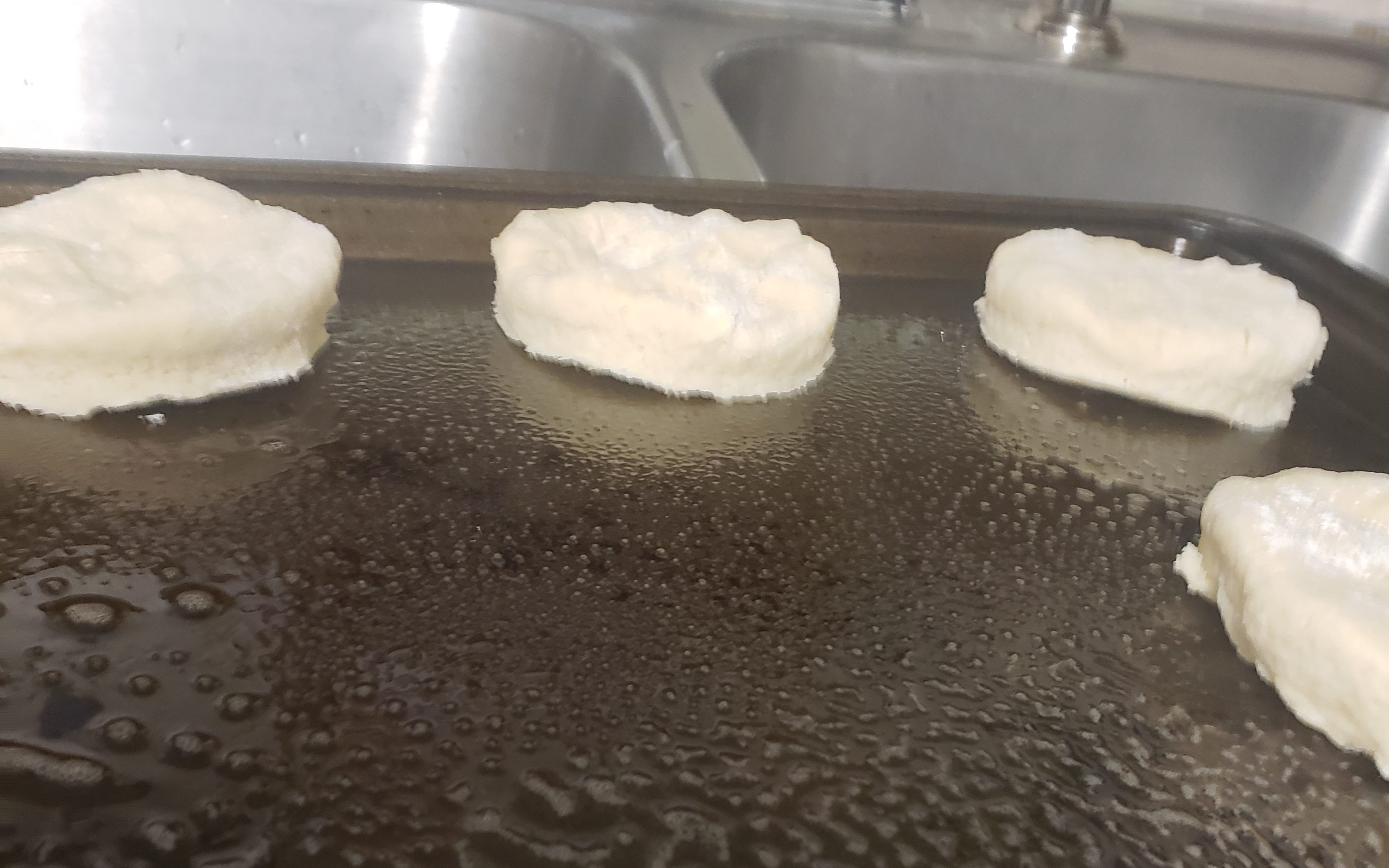 10. Place them on the center rack and then bake for 10-15 minutes depending on thickness. If you are worried about the bottoms burning, place a cookie sheet or aluminum foil on the rack under the biscuit pans. They will still bake but the bottoms will not burn. Stick a knife in them. If it comes out clean, they are done.