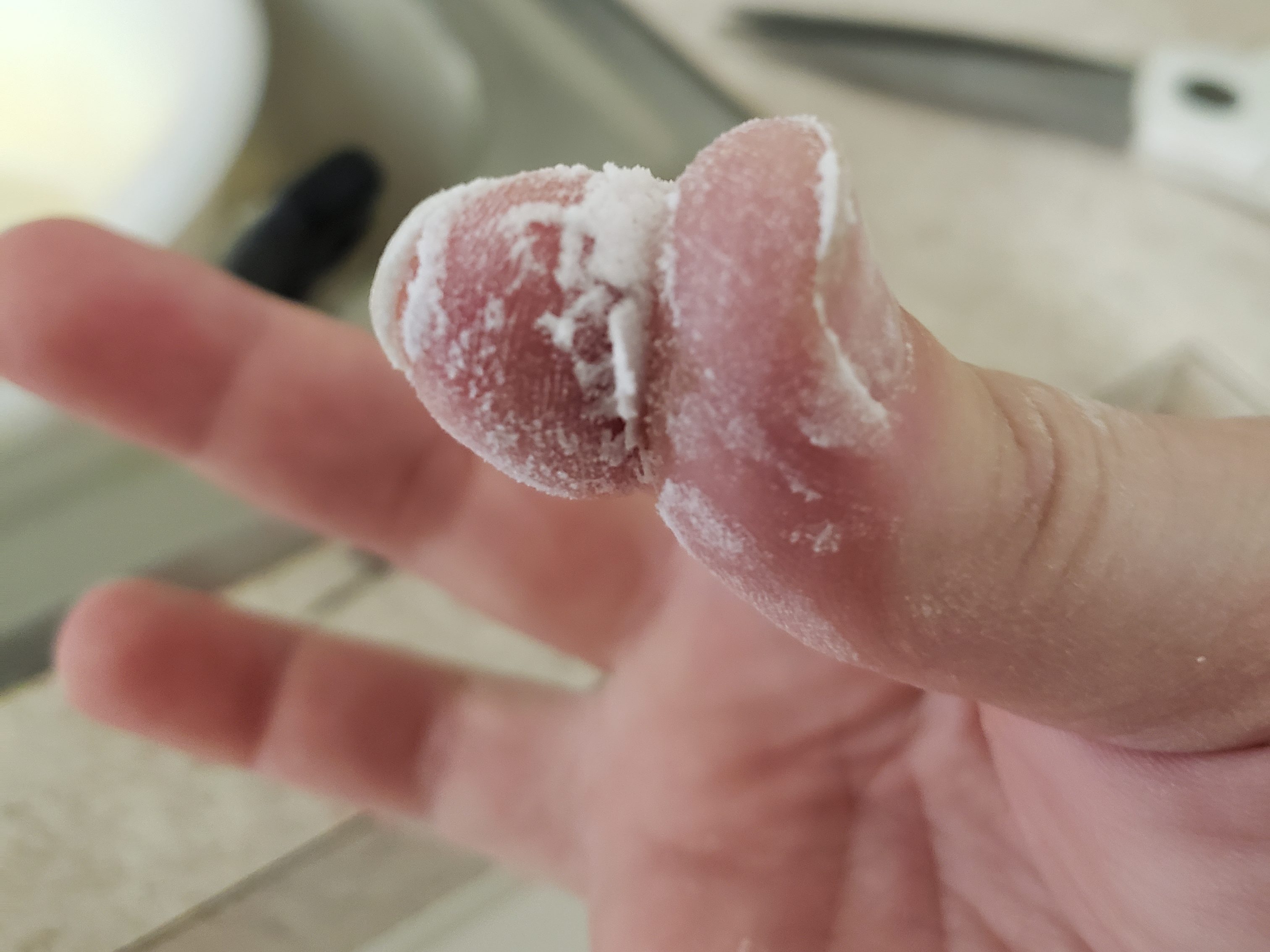 When I say a pinch, I mean the amount on the left. This little bit of baking soda has been a lifesaver for my husband who suffers from heartburn. It cuts the acid from the tomato sauce.