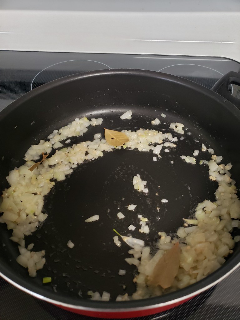 - When the onions are translucent, add the bell pepper, garlic, and carrots.